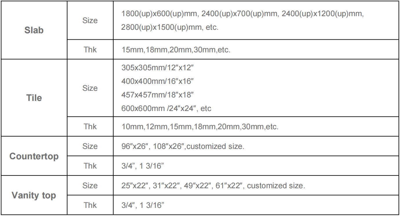 • Polished/Honed/etc.